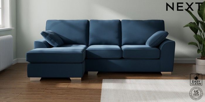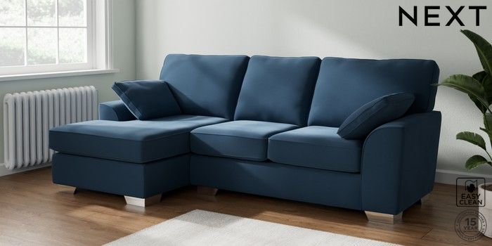 7.3.1 Buy Stamford Medium Sofa Chaise - Left Hand Plush Velvet Easy Clean Airforce Blue Large Square Angle - Chrome Metal from the Next UK online shop Click here to use our accessible website
