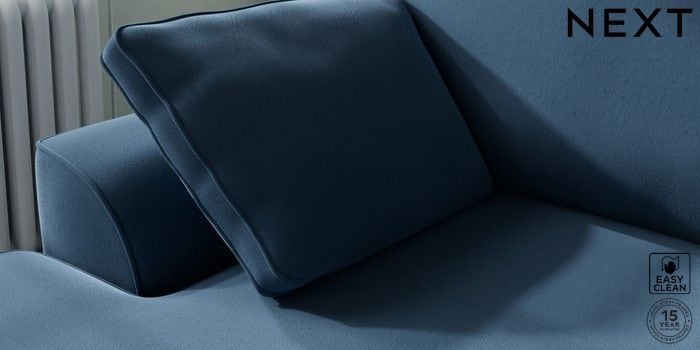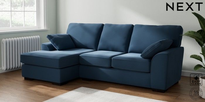 7.2.10 Buy Stamford Medium Sofa Chaise - Left Hand Plush Velvet Easy Clean Airforce Blue Large Square Angle - Dark from the Next UK online shop Click here to use our accessible website