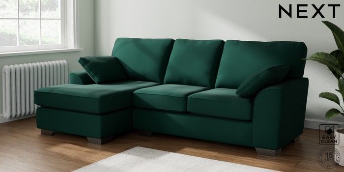 6.12.1 Buy Stamford Medium Sofa Chaise - Left Hand Plush Velvet Easy Clean Bottle Green Large Square Angle - Gunmetal from the Next UK online shop Click here to use our accessible website