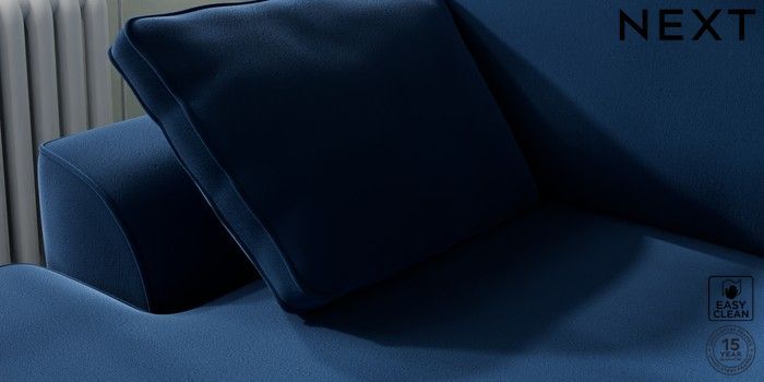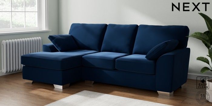 7.3.1 Buy Stamford Medium Sofa Chaise - Left Hand Plush Velvet Easy Clean Navy Blue Large Square Angle - Chrome Metal from the Next UK online shop Click here to use our accessible website