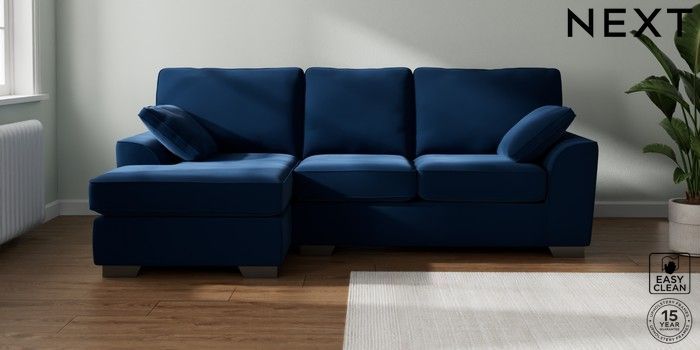 7.3.1 Buy Stamford Medium Sofa Chaise - Left Hand Plush Velvet Easy Clean Navy Blue Large Square Angle - Gunmetal from the Next UK online shop Click here to use our accessible website