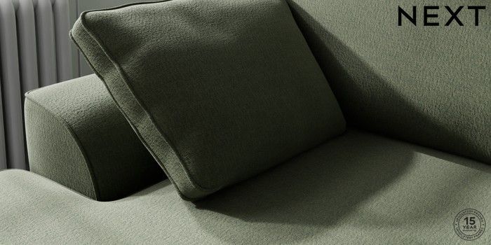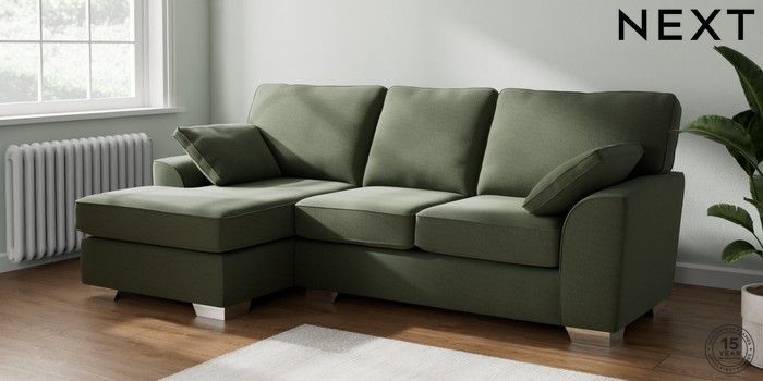 7.3.1 Buy Stamford Medium Sofa Chaise - Left Hand Relaxed Linen Look Dark Green Large Square Angle - Chrome Metal from the Next UK online shop Click here to use our accessible website