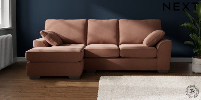 7.2.10 Buy Stamford Medium Sofa Chaise - Left Hand Relaxed Linen Look Light Rust Brown Large Square Angle - Gunmetal from the Next UK online shop Click here to use our accessible website