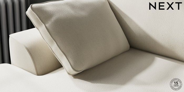 7.3.1 Buy Stamford Medium Sofa Chaise - Left Hand Relaxed Linen Look Oyster Large Square Angle - Chrome Metal from the Next UK online shop Click here to use our accessible website