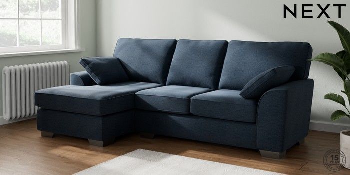 7.2.6 Buy Stamford Medium Sofa Chaise - Left Hand Ripple Chenille Dark Blue Large Square Angle - Gunmetal from the Next UK online shop Click here to use our accessible website