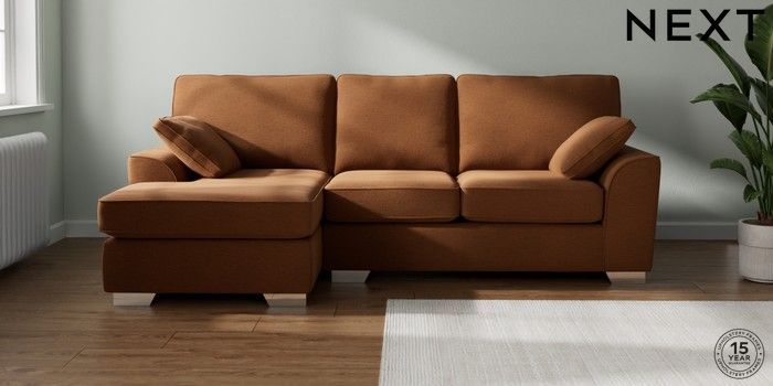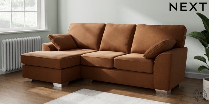 7.2.10 Buy Stamford Medium Sofa Chaise - Left Hand Ripple Chenille Mid Rust Brown Large Square Angle - Chrome Metal from the Next UK online shop Click here to use our accessible website