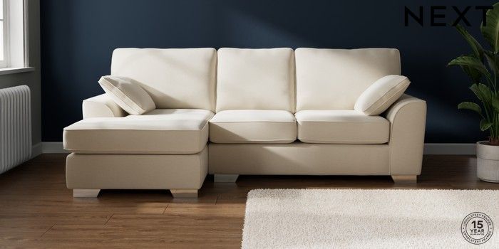 7.2.10 Buy Stamford Medium Sofa Chaise - Left Hand Ripple Chenille Oyster Large Square Angle - Chrome Metal from the Next UK online shop Click here to use our accessible website