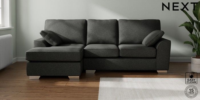 7.3.1 Buy Stamford Medium Sofa Chaise - Left Hand Tweedy Blend Easy Clean Charcoal Grey Large Square Angle - Chrome Metal from the Next UK online shop Click here to use our accessible website