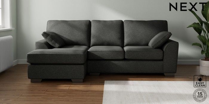7.3.1 Buy Stamford Medium Sofa Chaise - Left Hand Tweedy Blend Easy Clean Charcoal Grey Large Square Angle - Gunmetal from the Next UK online shop Click here to use our accessible website