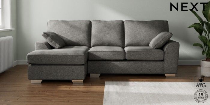 7.3.1 Buy Stamford Medium Sofa Chaise - Left Hand Tweedy Blend Easy Clean Dark Grey Large Square Angle - Chrome Metal from the Next UK online shop Click here to use our accessible website