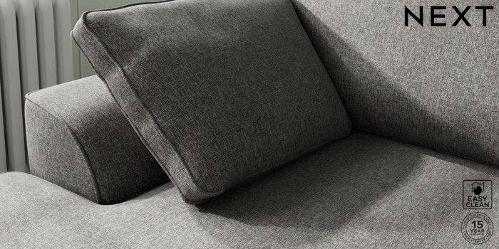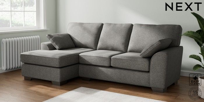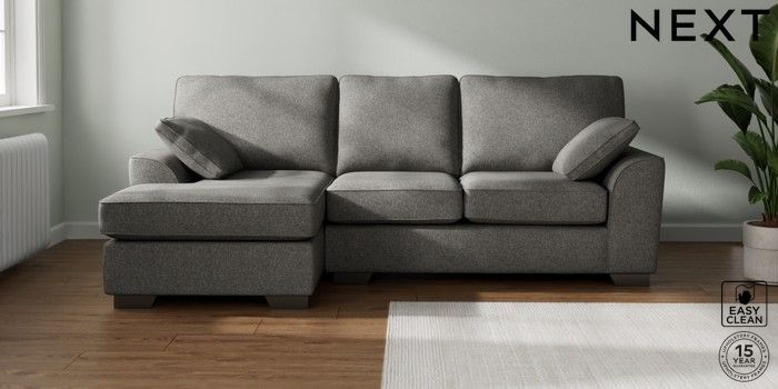 7.3.1 Buy Stamford Medium Sofa Chaise - Left Hand Tweedy Blend Easy Clean Dark Grey Large Square Angle - Gunmetal from the Next UK online shop Click here to use our accessible website