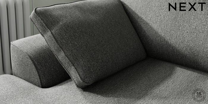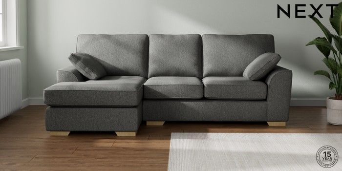 7.2.10 Buy Stamford Medium Sofa Chaise - Left Hand Tweedy Chenille Dark Grey Large Square Angle - Light from the Next UK online shop Click here to use our accessible website