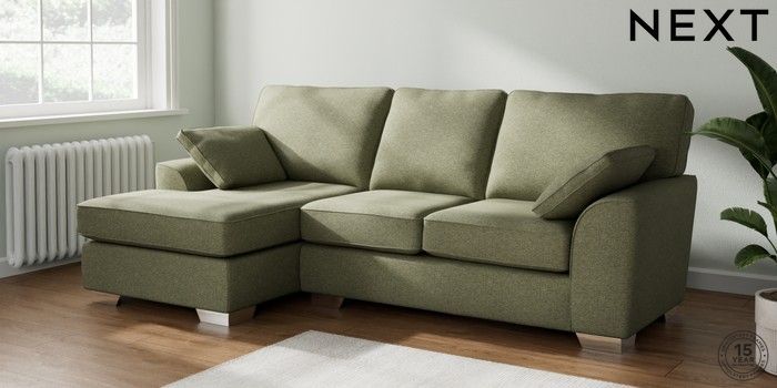 7.2.10 Buy Stamford Medium Sofa Chaise - Left Hand Tweedy Chenille Mid Moss Green Large Square Angle - Chrome Metal from the Next UK online shop Click here to use our accessible website