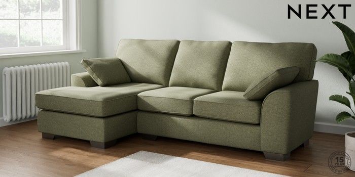 7.2.10 Buy Stamford Medium Sofa Chaise - Left Hand Tweedy Chenille Mid Moss Green Large Square Angle - Gunmetal from the Next UK online shop Click here to use our accessible website