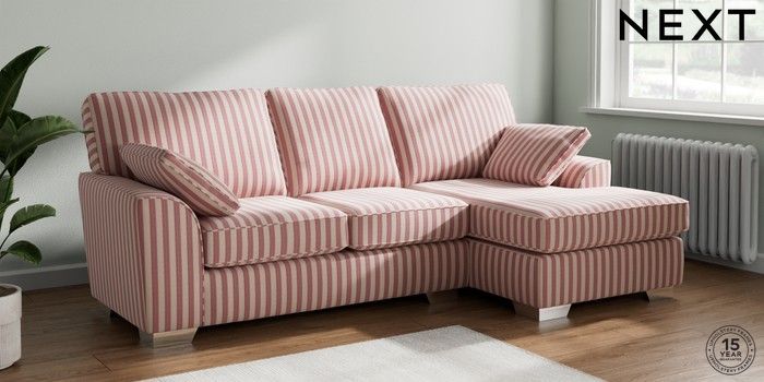 7.3.1 Buy Stamford Medium Sofa Chaise - Right Hand Bold Chenille Stripe Dark Pink Large Square Angle - Chrome Metal from the Next UK online shop Click here to use our accessible website