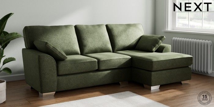 7.3.1 Buy Stamford Medium Sofa Chaise - Right Hand Boucle Chenille Dark Moss Green Large Square Angle - Chrome Metal from the Next UK online shop Click here to use our accessible website