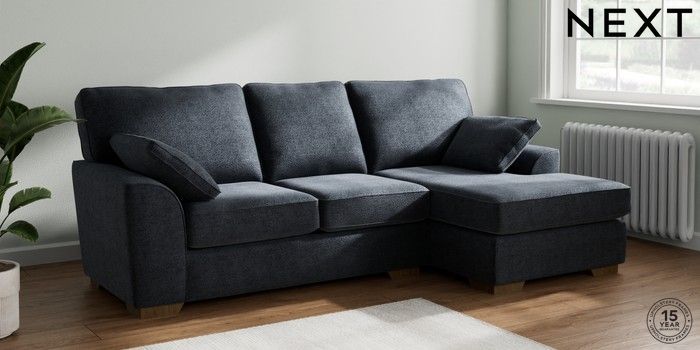 7.2.10 Buy Stamford Medium Sofa Chaise - Right Hand Boucle Chenille Dark Slate Blue Large Square Angle - Mid from the Next UK online shop Click here to use our accessible website