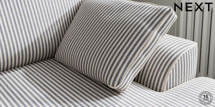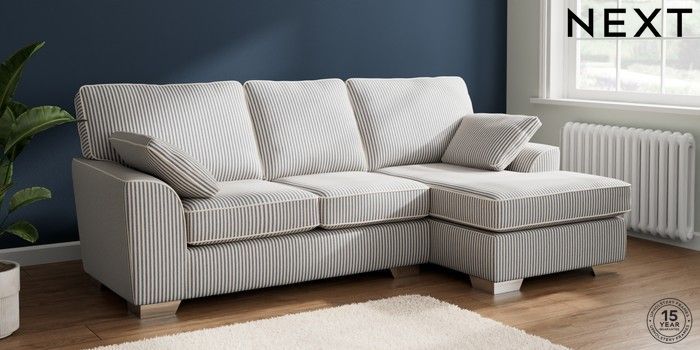 7.3.1 Buy Stamford Medium Sofa Chaise - Right Hand Chenille Stripe Slate Blue Large Square Angle - Chrome Metal from the Next UK online shop Click here to use our accessible website