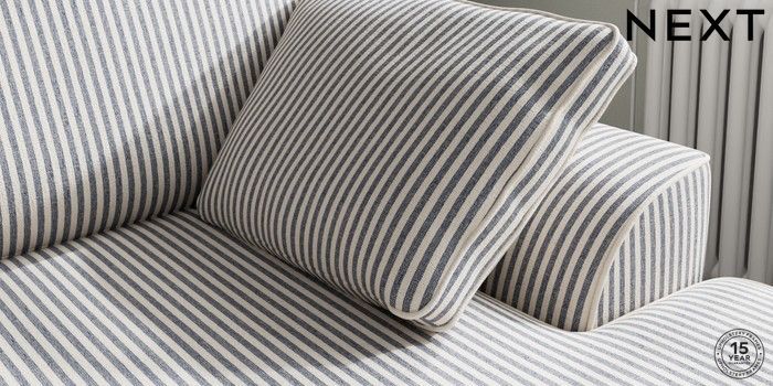 7.3.1 Buy Stamford Medium Sofa Chaise - Right Hand Chenille Stripe Slate Blue Large Square Angle - Gunmetal from the Next UK online shop Click here to use our accessible website