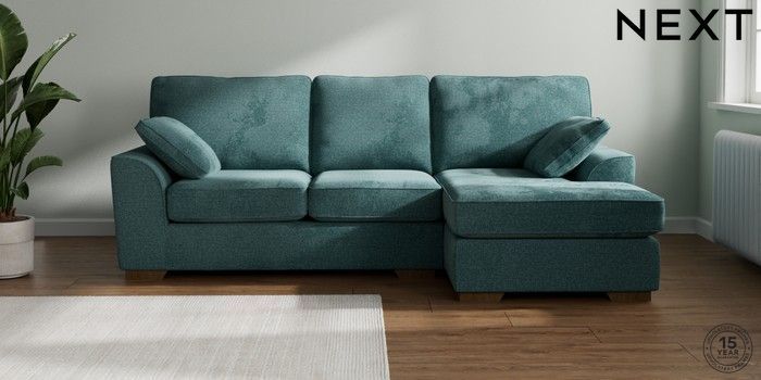 7.2.10 Buy Stamford Medium Sofa Chaise - Right Hand Chunky Chenille Mid Teal Green Large Square Angle - Mid from the Next UK online shop Click here to use our accessible website