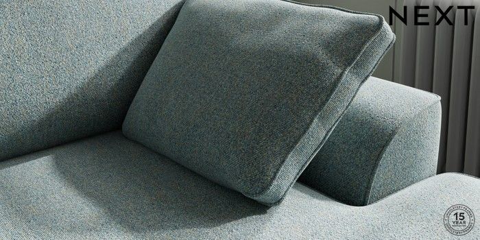 7.2.10 Buy Stamford Medium Sofa Chaise - Right Hand Chunky Marl Mid Blue Large Square Angle - Brushed Brass from the Next UK online shop Click here to use our accessible website