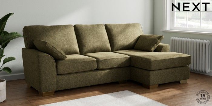 7.2.10 Buy Stamford Medium Sofa Chaise - Right Hand Cotswold Chenille Dark Green Large Square Angle - Brushed Brass from the Next UK online shop Click here to use our accessible website