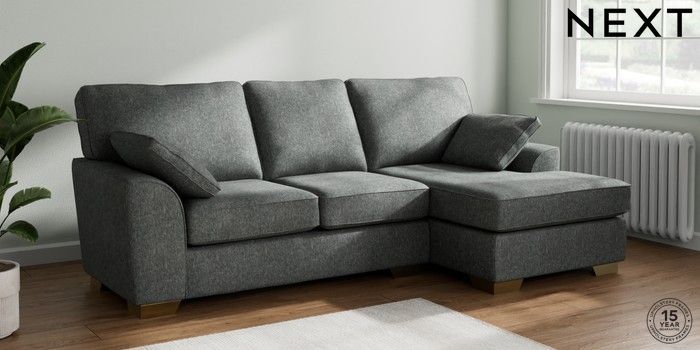 7.2.10 Buy Stamford Medium Sofa Chaise - Right Hand Cotswold Chenille Dark Grey Large Square Angle - Brushed Brass from the Next UK online shop Click here to use our accessible website