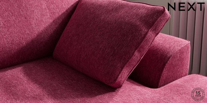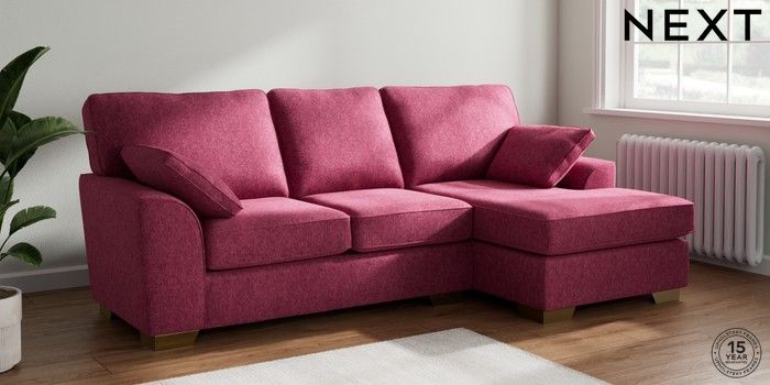 7.2.10 Buy Stamford Medium Sofa Chaise - Right Hand Cotswold Chenille Dark Raspberry Pink Large Square Angle - Brushed Brass from the Next UK online shop Click here to use our accessible website
