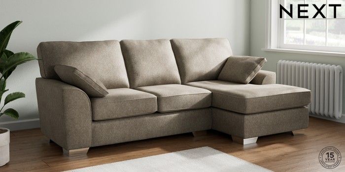 7.2.6 Buy Stamford Medium Sofa Chaise - Right Hand Cotswold Chenille Mid Mink Brown Large Square Angle - Chrome Metal from the Next UK online shop Click here to use our accessible website