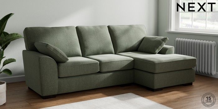 7.2.6 Buy Stamford Medium Sofa Chaise - Right Hand Chunky Texture Mid Forest Green Large Square Angle - Dark from the Next UK online shop Click here to use our accessible website
