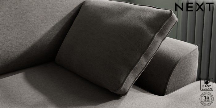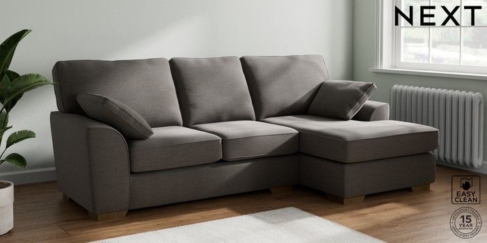 7.2.10 Buy Stamford Medium Sofa Chaise - Right Hand Fine Chenille Easy Clean Dark Smoke Grey Large Square Angle - Mid from the Next UK online shop Click here to use our accessible website