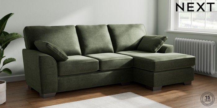7.2.6 Buy Stamford Medium Sofa Chaise - Right Hand Luxe Chenille Mid Green Large Square Angle - Gunmetal from the Next UK online shop Click here to use our accessible website