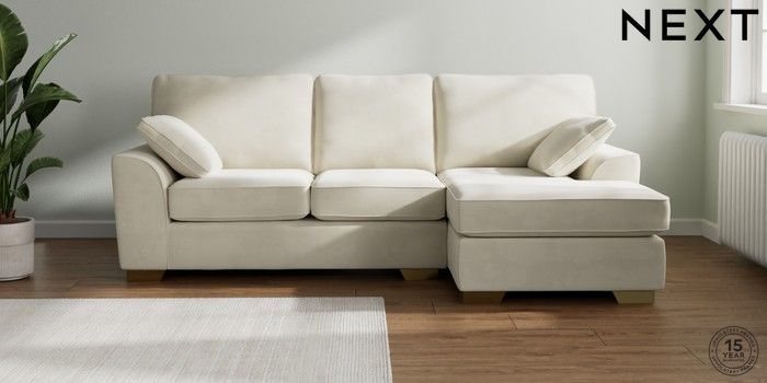 7.0.3 Buy Stamford Medium Sofa Chaise - Right Hand Luxe Chenille Oyster Large Square Angle - Brushed Brass from the Next UK online shop Click here to use our accessible website