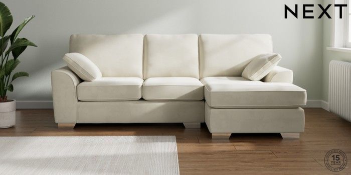 7.0.3 Buy Stamford Medium Sofa Chaise - Right Hand Luxe Chenille Oyster Large Square Angle - Chrome Metal from the Next UK online shop Click here to use our accessible website