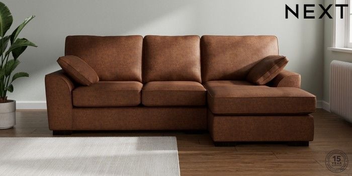 7.3.1 Buy Stamford Medium Sofa Chaise - Right Hand Monza Faux Leather Easy Clean Chestnut Brown Large Square Angle - Dark from the Next UK online shop Click here to use our accessible website
