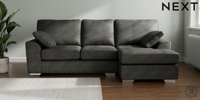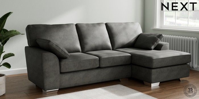 7.3.1 Buy Stamford Medium Sofa Chaise - Right Hand Monza Faux Leather Easy Clean Dark Grey Large Square Angle - Chrome Metal from the Next UK online shop Click here to use our accessible website