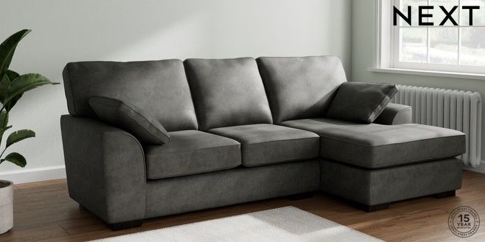 7.2.10 Buy Stamford Medium Sofa Chaise - Right Hand Monza Faux Leather Easy Clean Dark Grey Large Square Angle - Dark from the Next UK online shop Click here to use our accessible website