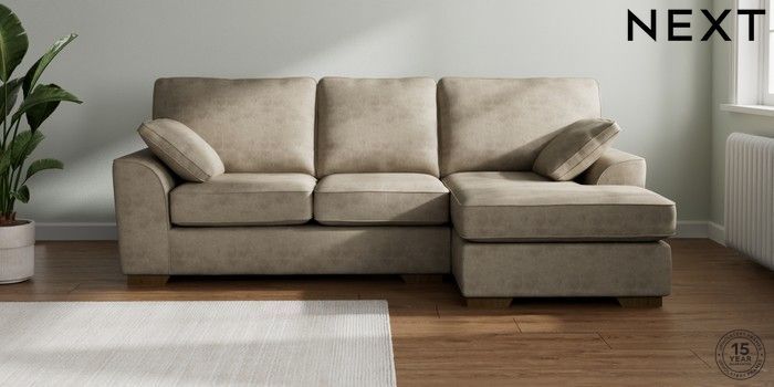 7.3.1 Buy Stamford Medium Sofa Chaise - Right Hand Monza Faux Leather Easy Clean Mink Brown Large Square Angle - Mid from the Next UK online shop Click here to use our accessible website