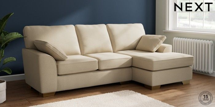 7.2.10 Buy Stamford Medium Sofa Chaise - Right Hand Natural Mix Light Natural Large Square Angle - Brushed Brass from the Next UK online shop Click here to use our accessible website