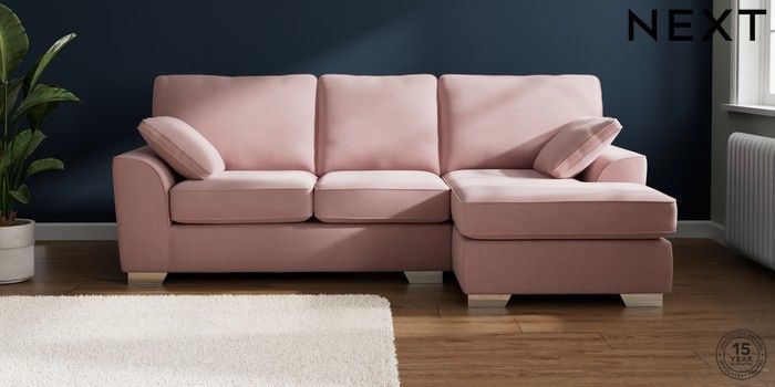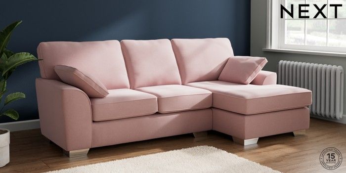 7.2.10 Buy Stamford Medium Sofa Chaise - Right Hand Natural Mix Light Rose Pink Large Square Angle - Chrome Metal from the Next UK online shop Click here to use our accessible website