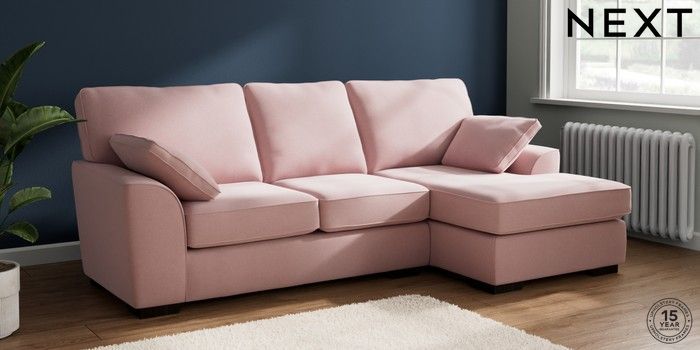 7.2.10 Buy Stamford Medium Sofa Chaise - Right Hand Natural Mix Light Rose Pink Large Square Angle - Dark from the Next UK online shop Click here to use our accessible website