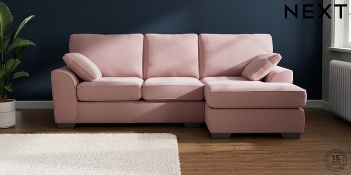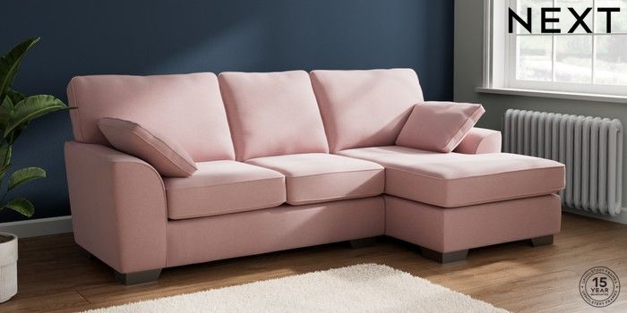 7.3.1 Buy Stamford Medium Sofa Chaise - Right Hand Natural Mix Light Rose Pink Large Square Angle - Gunmetal from the Next UK online shop Click here to use our accessible website