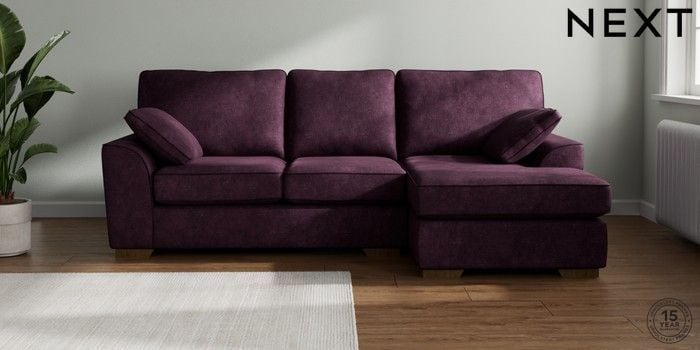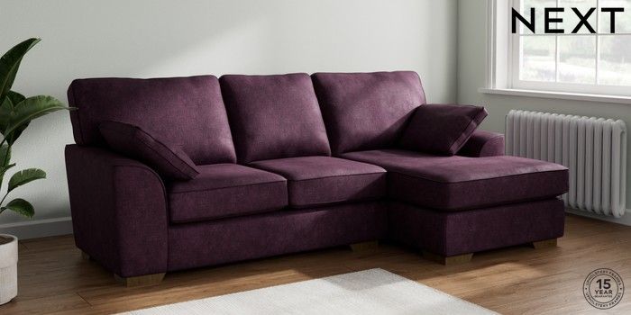7.2.10 Buy Stamford Medium Sofa Chaise - Right Hand Plush Chenille Dark Plum Purple Large Square Angle - Mid from the Next UK online shop Click here to use our accessible website