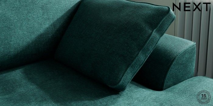 7.2.10 Buy Stamford Medium Sofa Chaise - Right Hand Plush Chenille Dark Teal Green Large Square Angle - Brushed Brass from the Next UK online shop Click here to use our accessible website