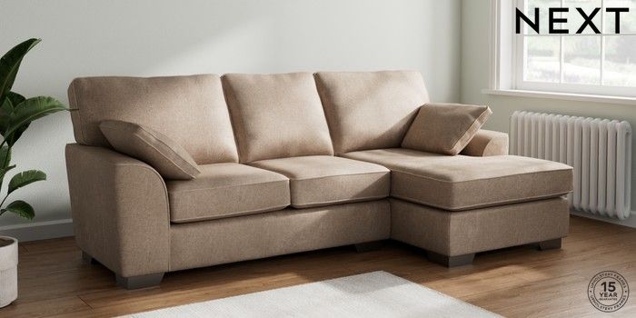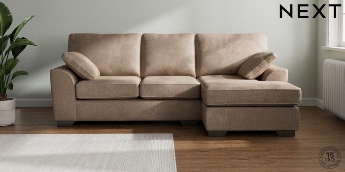 7.2.10 Buy Stamford Medium Sofa Chaise - Right Hand Plush Chenille Mid Natural Large Square Angle - Gunmetal from the Next UK online shop Click here to use our accessible website
