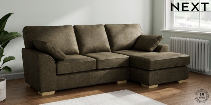 7.2.10 Buy Stamford Medium Sofa Chaise - Right Hand Plush Chenille Moss Green Large Square Angle - Light from the Next UK online shop Click here to use our accessible website
