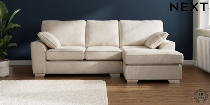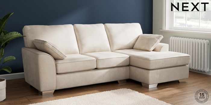 7.2.10 Buy Stamford Medium Sofa Chaise - Right Hand Plush Chenille Oyster Large Square Angle - Chrome Metal from the Next UK online shop Click here to use our accessible website