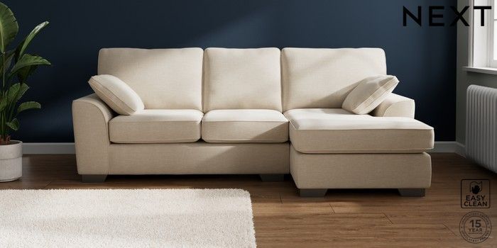 7.2.6 Buy Stamford Medium Sofa Chaise - Right Hand Fine Chenille Easy Clean Oyster Large Square Angle - Gunmetal from the Next UK online shop Click here to use our accessible website