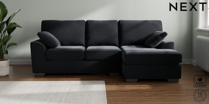 7.3.1 Buy Stamford Medium Sofa Chaise - Right Hand Plush Velvet Easy Clean Charcoal Grey Large Square Angle - Gunmetal from the Next UK online shop Click here to use our accessible website