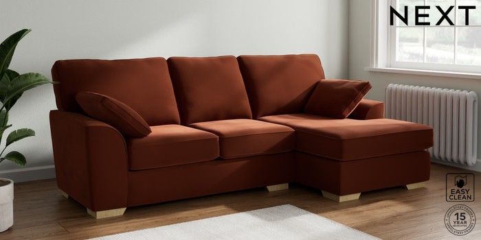 7.2.6 Buy Stamford Medium Sofa Chaise - Right Hand Plush Velvet Easy Clean Ginger Orange Large Square Angle - Light from the Next UK online shop Click here to use our accessible website